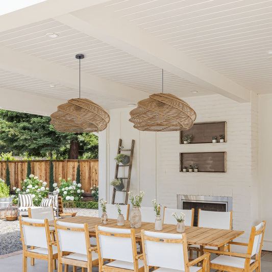 Japanese-Style Bamboo Rattan Ceiling Light – Flush Mount or Hanging Fixture